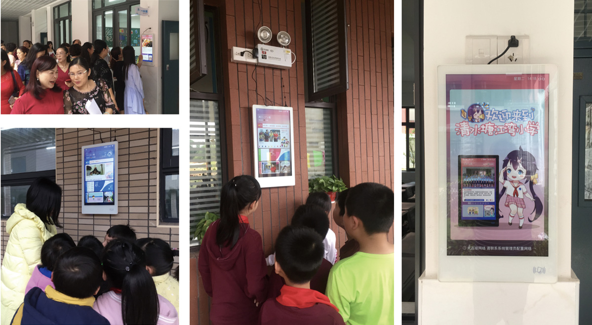 慧能電子班牌的常規使用場景是在學校教室外走道墻上,只需要提供電源與網絡接入即可工作。產品提供了充分的網絡接入手段與豐富的傳感器,結合高清分辨率的顯示屏幕,為學校呈現出一款信息收集與展示上“一步到位”的解決方案。